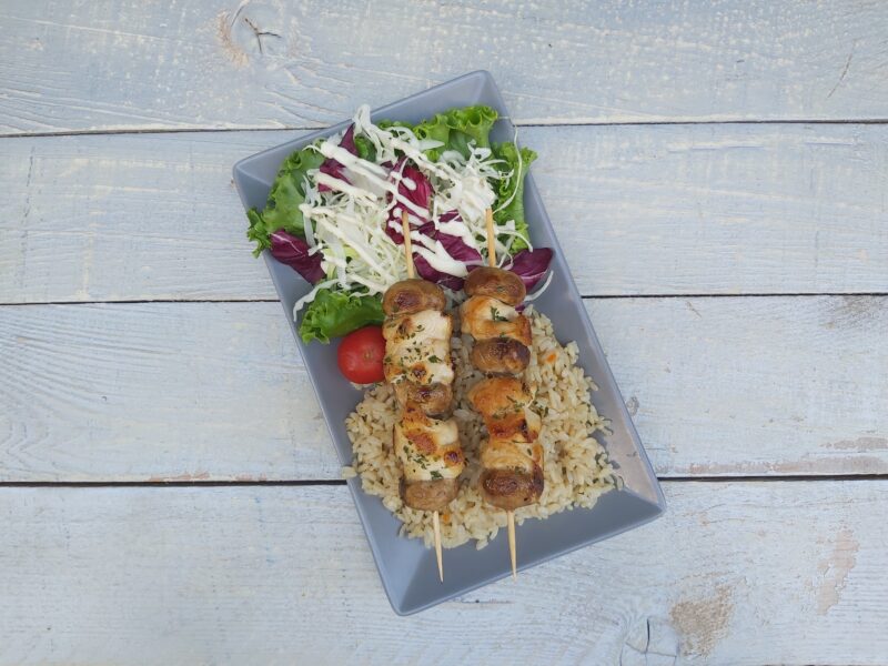 Pečeni pileći zabatak i bijela riža sa gljivama i porilukom