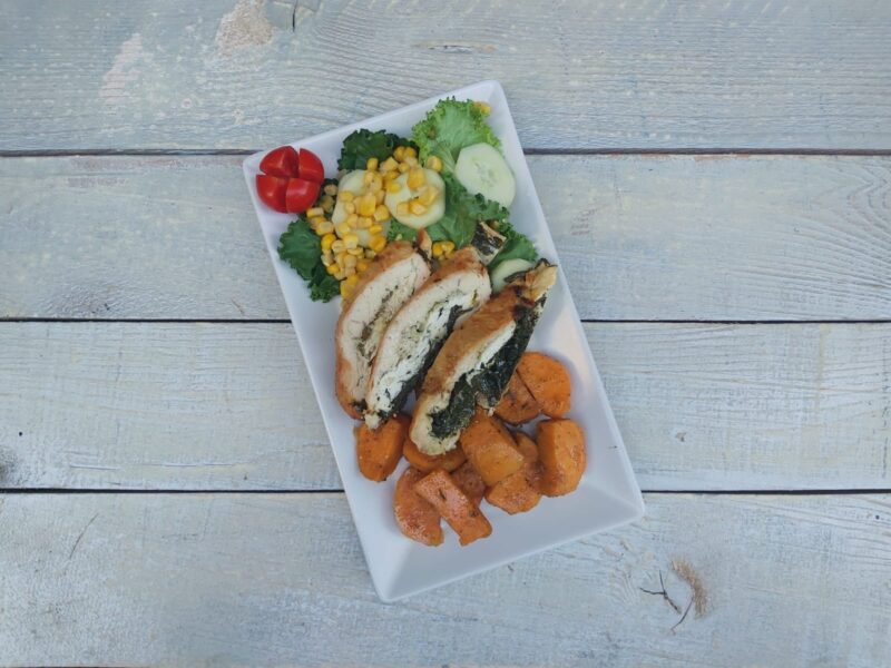 Pureća rolada sa špinatom i sirom i pečeni batat