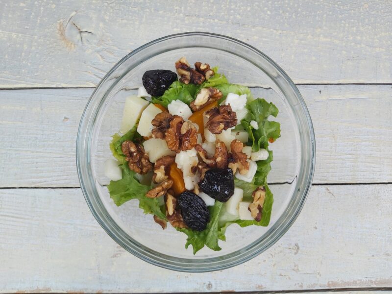 Salata sa pečenom bučom, kozijim sirom i suhim šljivama